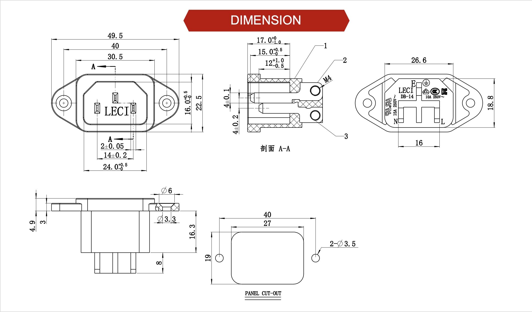 端子塑胶之间3750VAC (50-60Hz) 1 min