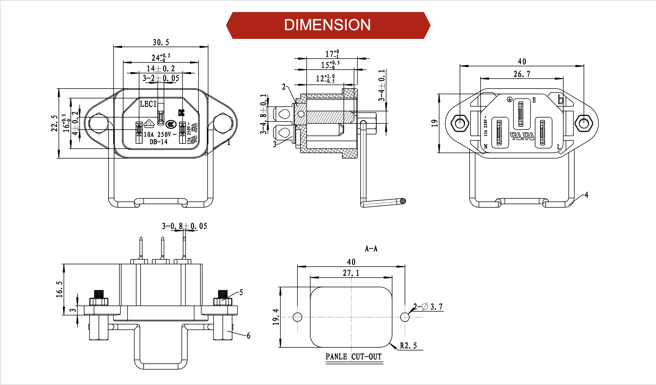 端子塑胶之间3750VAC (50-60Hz) 1 min