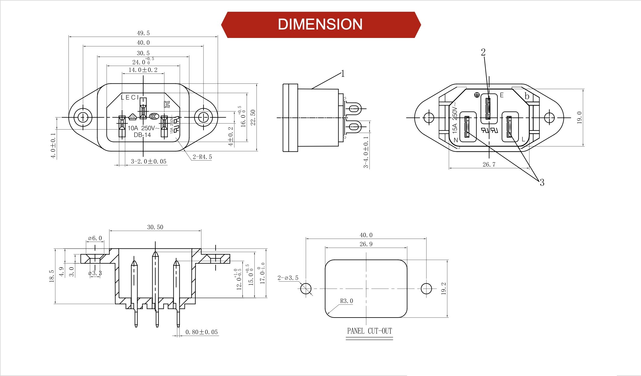 额定值:15A250V / 10A250V