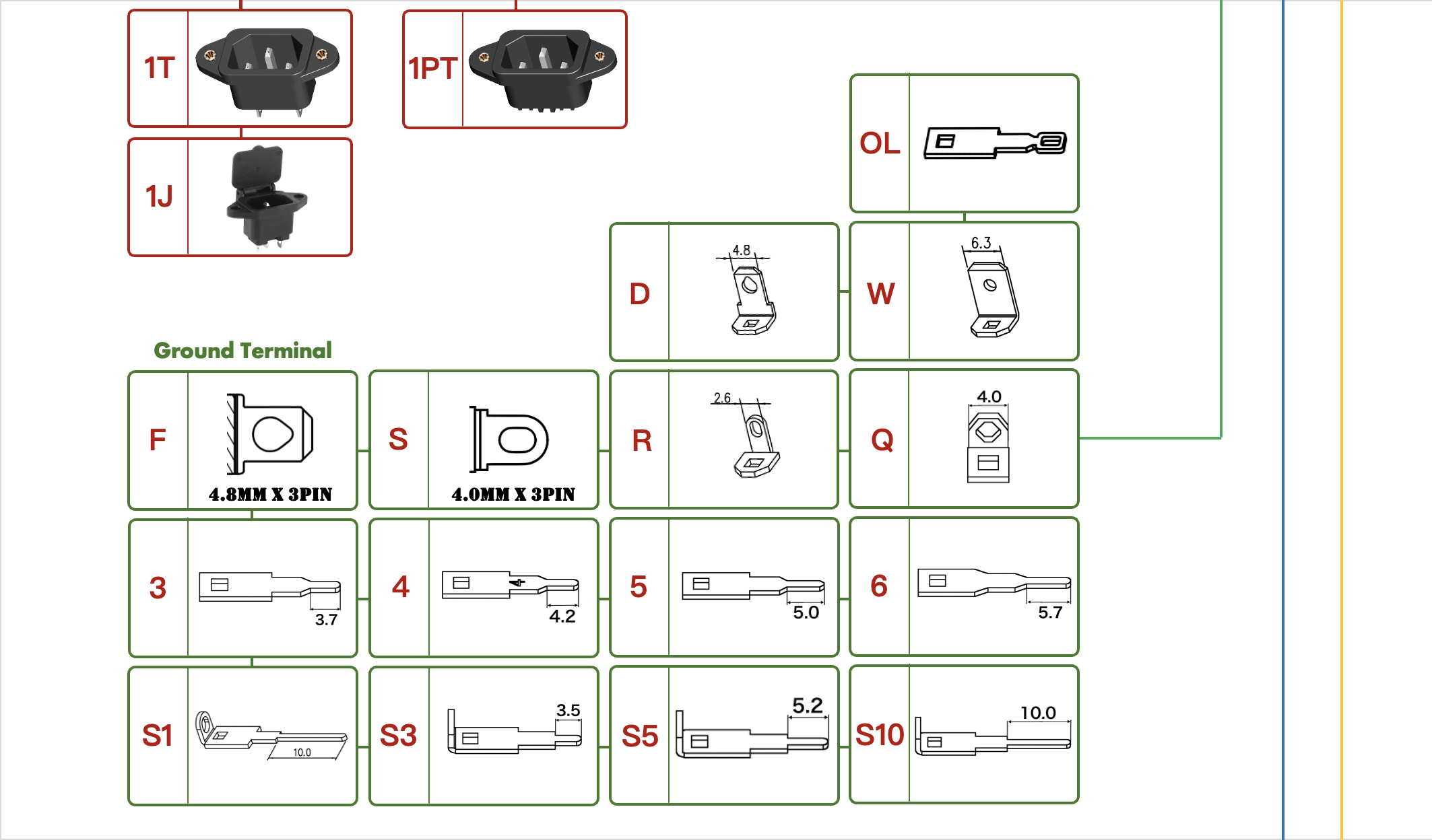 端子塑胶之间3750VAC (50-60Hz) 1 min