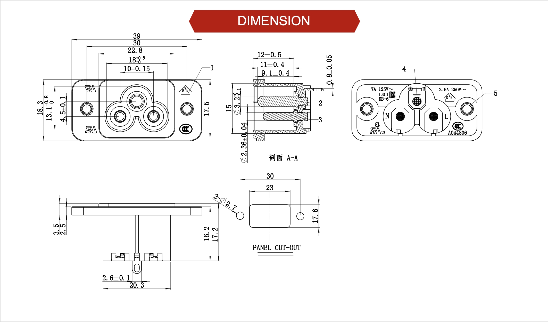 端子塑胶之间3750VAC (50-60Hz) 1 min