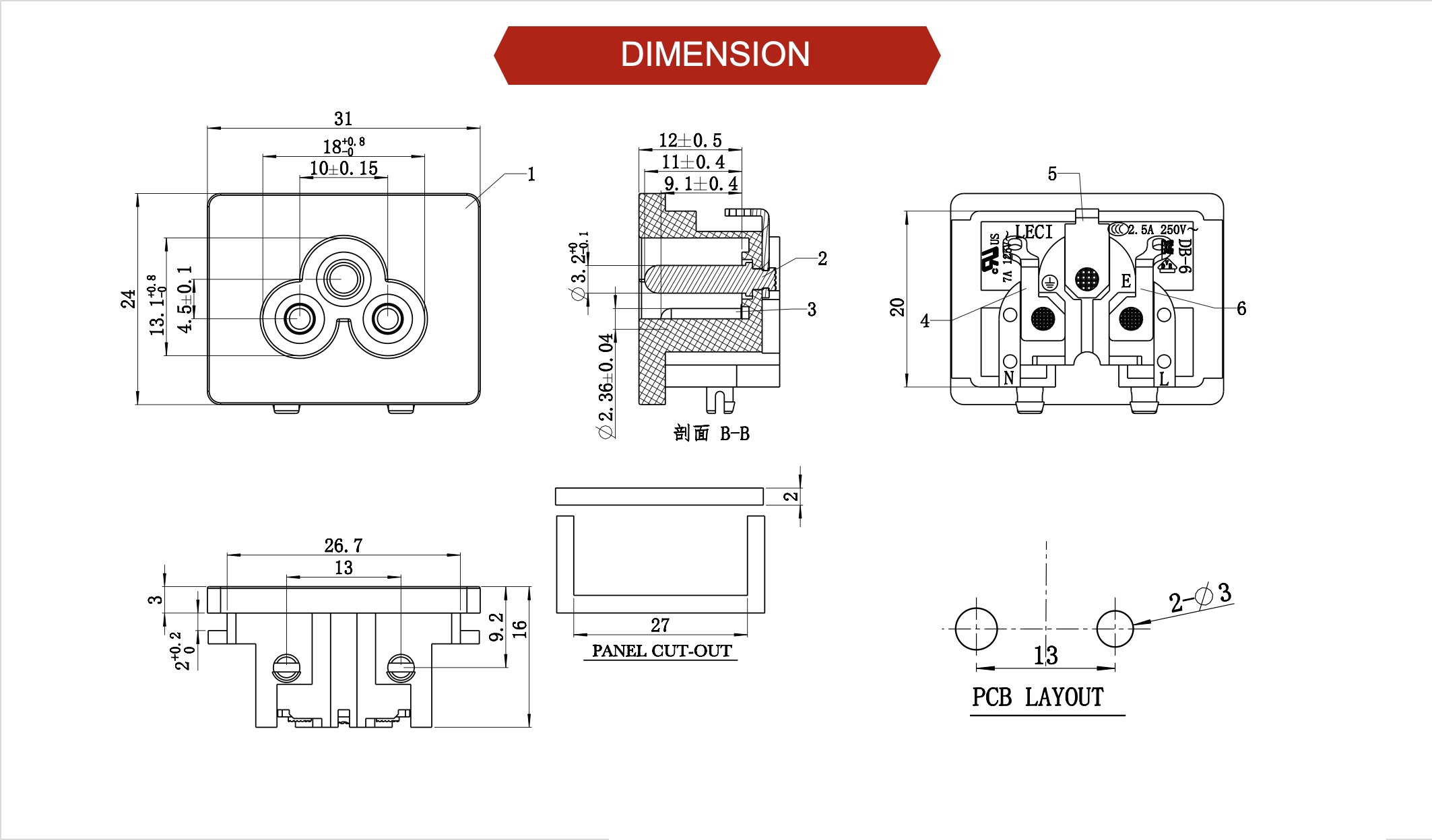 端子塑胶之间3750VAC (50-60Hz) 1 min