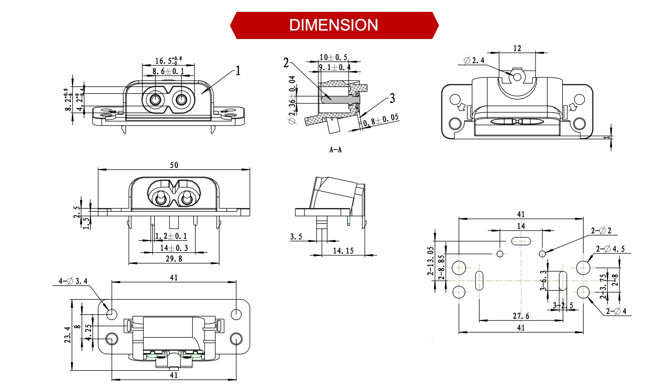 端子塑胶之间3750VAC (50-60Hz) 1 min