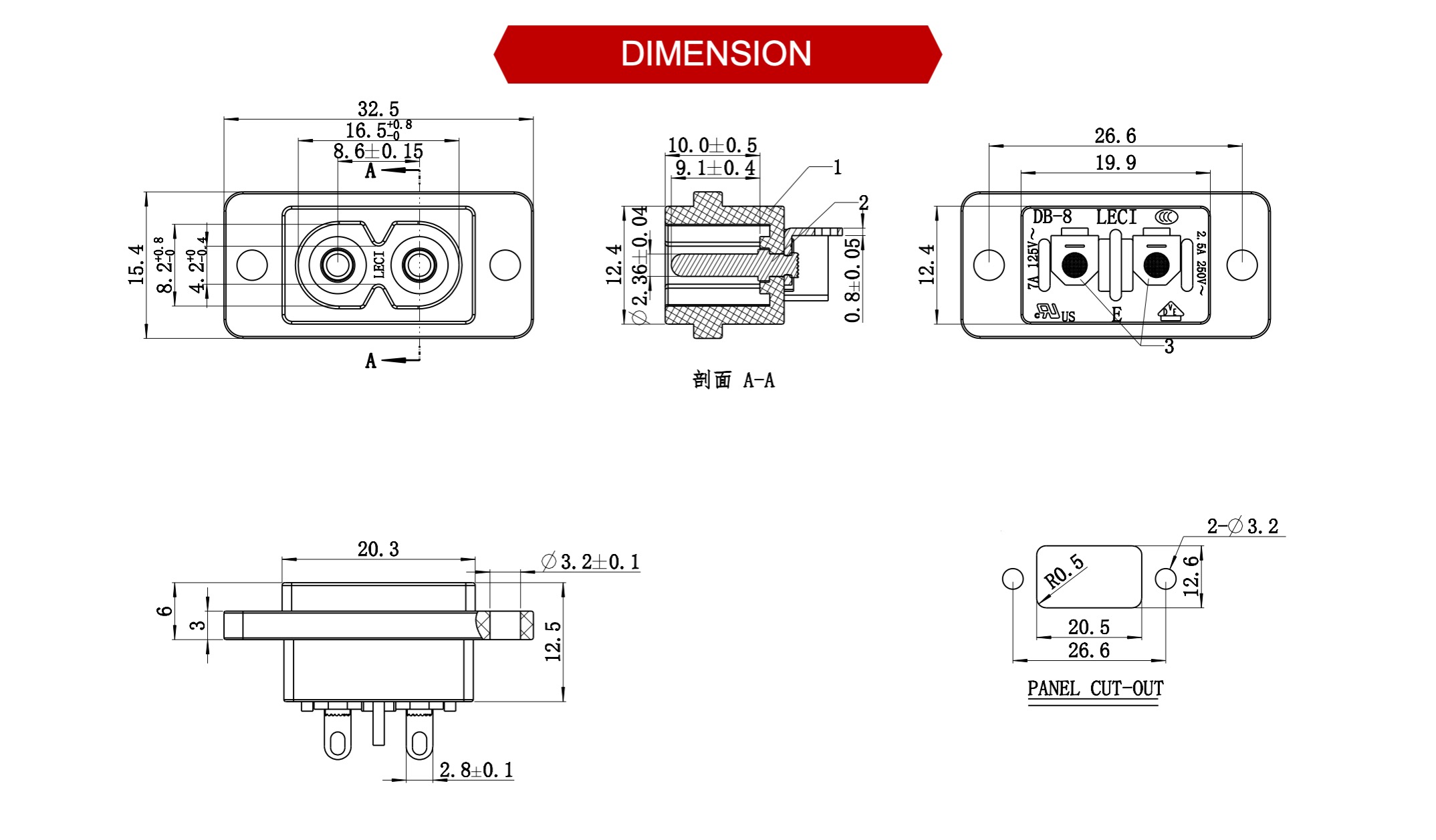 端子塑胶之间3750VAC (50-60Hz) 1 min