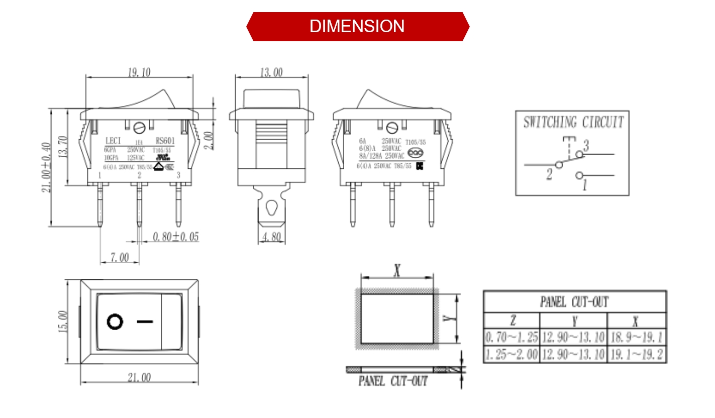 高电流版额定值:16A125V 13(7)A250V 10A250V 8/128A250V