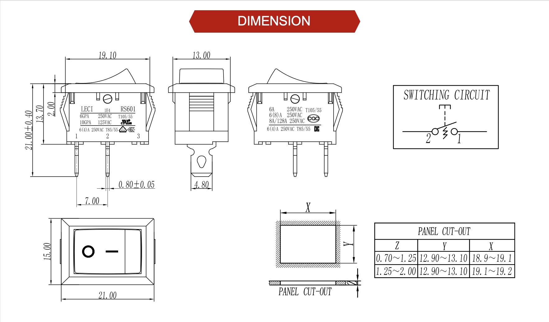 高电流版额定值:16A125V 13(7)A250V 10A250V 8/128A250V