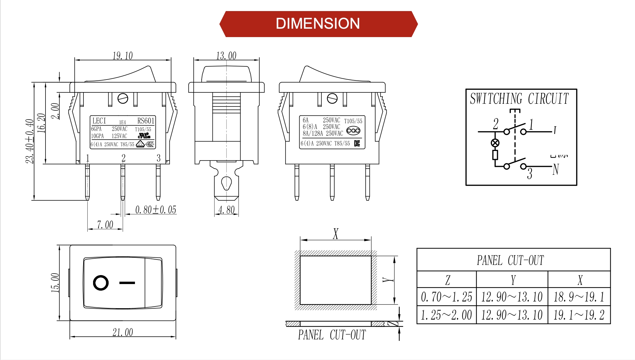 高电流版额定值:16A125V 13(7)A250V 10A250V 8/128A250V