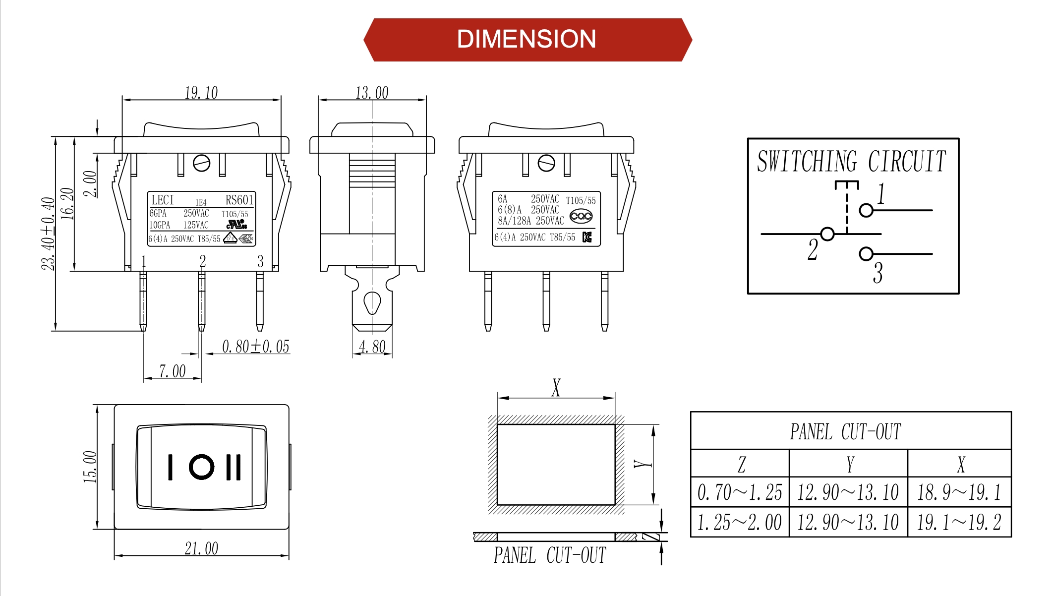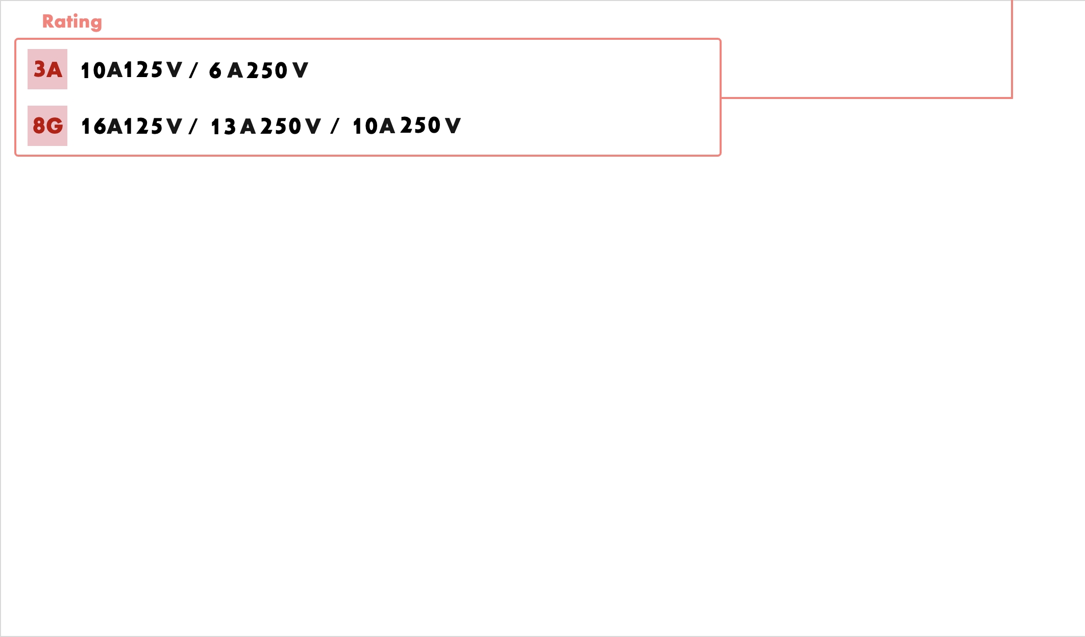 高电流版额定值:16A125V 13(7)A250V 10A250V 8/128A250V