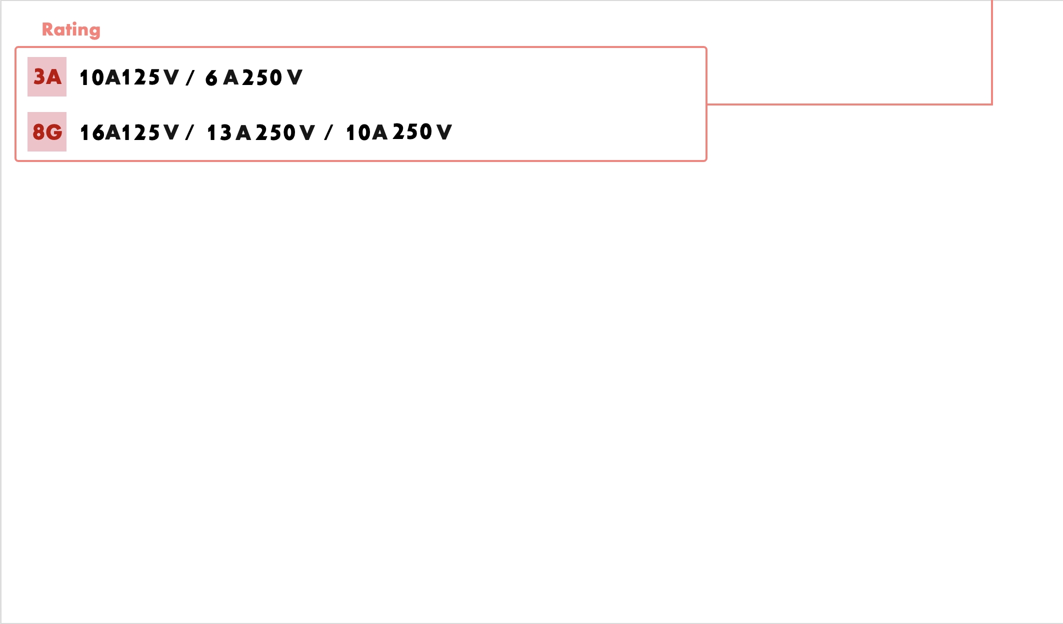 高电流版额定值:16A125V 13(7)A250V 10A250V 8/128A250V