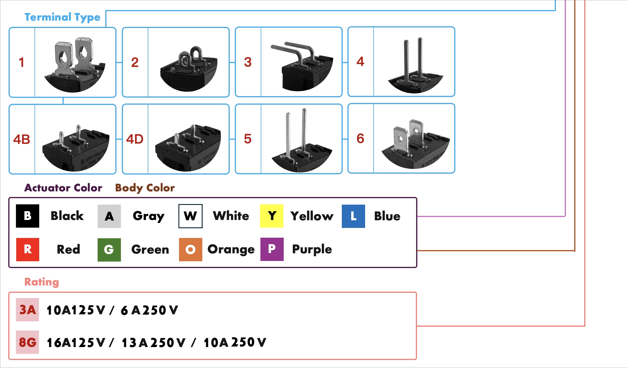 标准版额定值:10A125V 6(8)A250V 6(4)A250V